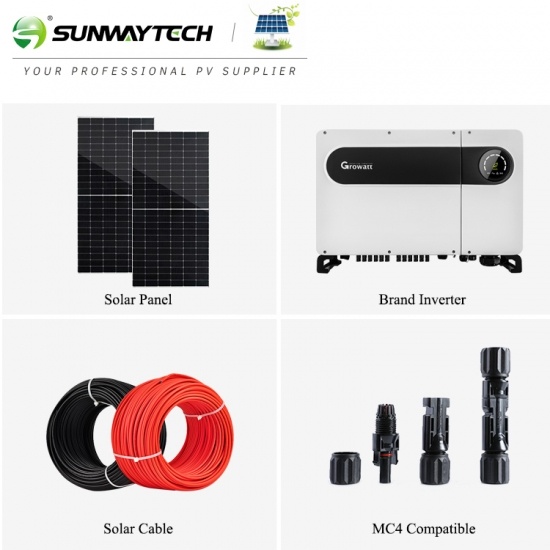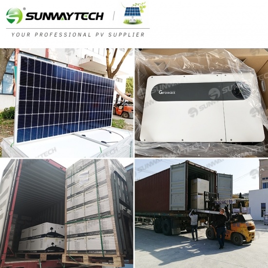 Tensão de saída trifásica 400V AC 20KW 20000W 20Kwp Sistema de energia solar fora da grade com painel de energia solar Sunway Half Cut