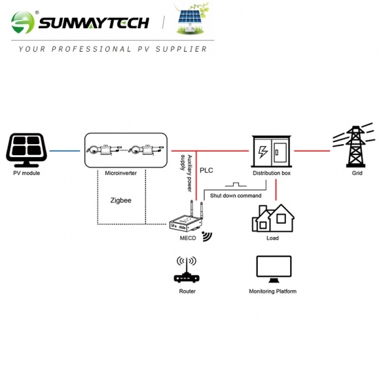A potência dos microinversores Deye varia de 300W a 2000W, e vem com diferentes tensões de saída 220V/230V/127V. Ele suporta vários métodos de comunicação WIFI/PLC/Zigbee. Graças ao MECD, gateway de comunicação, o microinversor pode ser desligado de forma remota e imediata.